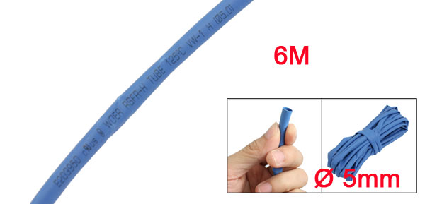 6M 20Ft Long 5.0mm Diameter Blue Polyolefin Heat Shrinkable Tube