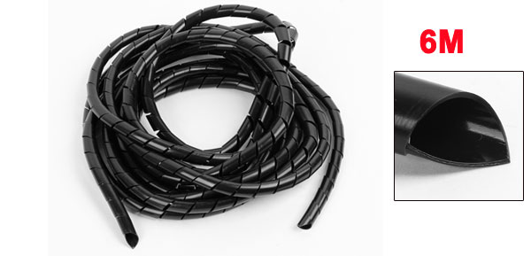 6M Long Flexible Black PE Polyethylene Spiral Cable Wire Wrap Tube 12mm