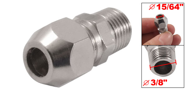 Product Name Compression Fitting Male Thread Diameter 9.6mm / 3/8" Fit Tube(OD) 6mm / 15/64" Overall Size 12 x 12 x 25mm / 0.47" x 0.47" x 0.98"(L*W*T) Color Silver Tone Material Metal Weight 11g Package Content 1 x Compression Fitting - Reviews