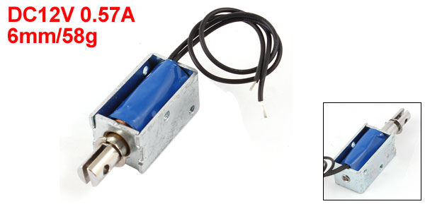 Product Name Solenoid Electromagnet Rated Voltage & Current DC12V 0.57A Power 6.85W Action Form Pull Type Stroke & Force 6mm/58g