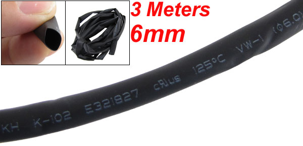 6mm Black Polyolefin Insulation Heat Shrink Tubing 3 Meters 9.8ft