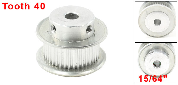 Product Name Timing Pulley Type XL40 Number of Tooth 40 Pitch 0.8mm/ 1/30'' Overall Size 32 x 22mm/1.1'' x 0.86''(D*H) Bore Diameter 6mm/ 15/64" Fit Belt Width 11mm/0.43'' Material Aluminum Color Silver Tone Weight 35g Package Content 1 x Timing Pulley - Reviews