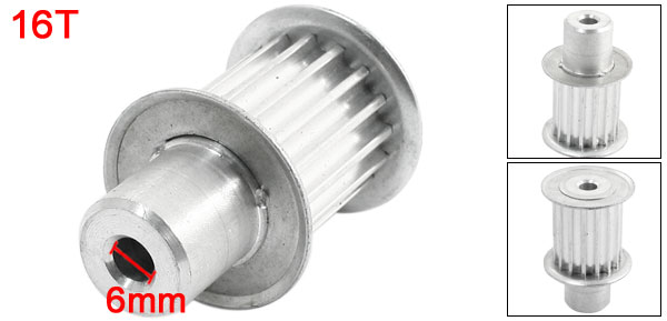 Product Name Timing Pulley Tooth Number 16T Pitch 5mm /0.2" Bore Diameter 6mm /0.24" Bore Outside Diameter 17mm /0.67" Fit Belt Width 27 mm /1.1" Overall Size 32 x 48mm /1.3" x 1.9" (D*H) Material Aluminum Alloy Color Silver Tone Weight 48g Package Content 1 x Timing Pulley - Reviews