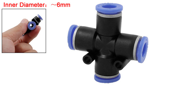Product Name Connector Type Cross Shaped Material Plastic Inner Diameter (Approx) 6mm (Each Ends) Total Dimension (Approx) 4.3cm x 4.3cm x 1.3cm / 1.6" x 1.6" x 0.5" (L * W *T) Color Black, Blue Weight 13g Package Content 1 x Pneumatic Tube Connector - Reviews