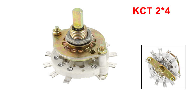 Product Name Rotary Switch Model KCT 2*4 Material Metal, Ceramic Dimensions(knob not included) 43 x 22mm /1.7" x 0.87"(Max.D*H) Knob Size 6 x 10mm/ 0.24" x 0.39"(D*L) Total Height 44mm/1.8" Pin Number 10 Contact Type 2P4T Color White, Bronze Tone Weight 36g Package Content 1 x Rotary Switch - Reviews