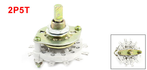 Product Name Rotary Switch Model KCZ 2*5 Material Metal, Ceramic Dimensions(knob not included) 43 x 26mm / 1.7" x 1"(Max.D*H) Knob Size 6 x10mm/ 0.24" x 0.39"(D*L) Fit Mounting Hole Diameter 10mm / 0.39" Total Height 44mm/1.7" Pin Number 12 Contact Type 2P5T Color White, Bronze Tone Weight 45g Package Content 1 x Rotary Switch - Reviews