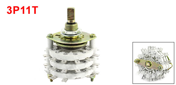 Product Name Rotary Switch Model KCZ 3*11 Material Metal, Ceramic Dimensions(knob not included) 43 x 31mm / 1.7" x 1.2"(Max.D*H) Knob Size 6 x10mm/ 0.24" x 0.39"(D*L) Fit Mounting Hole Diameter 10mm / 0.39" Total Height 53mm/2.1" Pin Number 12 Contact Type 3P11T Color White, Bronze Tone Weight 55g Package Content 1 x Rotary Switch - Reviews