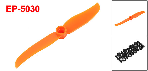 Product Name RC Airplane Propeller Blade Number 2 Model EP-5030 Motor Shaft Hole Dia 6mm / 0.24" Total Length(Rotating Diameter) 126mm / 5" Pitch 60mm / 2.4" Max Thickness 6mm / 0.24" Material Plastic Color Orange Net Weight 4g Package Content 1x Propeller