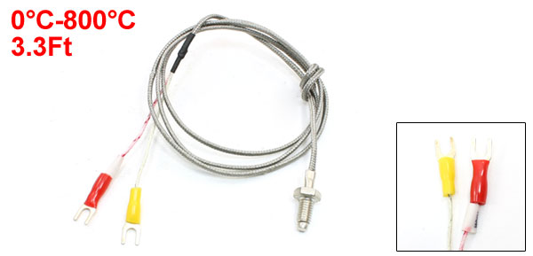 Product Name Thermocouple Probe Type E Type Fork Pin Number 2 Temperature Range 0°C-800°C Sensor Size 4.5 x 10mm/ 0.18" x 0.39" (D*L) Mounting Thread Dia 6mm/0.24" External Shield Material Metal Cable Length(Approx.) 1M / 3.3Ft Weight 19g Package Content 1 x Thermocouple Probe - Reviews