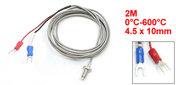 Product Name Thermocouple Probe Type K Type Fork Pin Number 2 Temperature Range 0°C-600°C Sensor Size 4.5 x 10mm/ 0.18" x 0.39" (D*L) Mounting Thread Dia 6mm/0.24" External Shield Material Metal Cable Length(Approx.) 2M / 7.9Ft Weight 30g Package Content 1 x Thermocouple Probe - Reviews