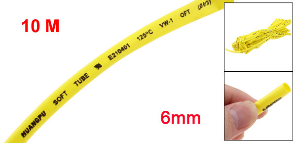 6mm Dia Ratio 2:1 Heat Shrinkable Tube Shrink Tubing 10M Yellow