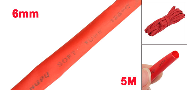 Details6mm Dia Ratio 2:1 Heat Shrinkable Tube Shrink Tubing 5M Red  Product Name Heat Shrinkable Tube Material Polyolefin Rated Voltage 600V Temperature Level 125°C Flammability VW-1 Diameter 6mm / 0.236"(Before Shrinking) 3mm / 0.118" (After Shrinking) Shrink Ratio 2:1 Length (Approx.) 5M / 16.4Ft Color Red Weight 38g Package Content 1 x Heat Shrinkable Tube