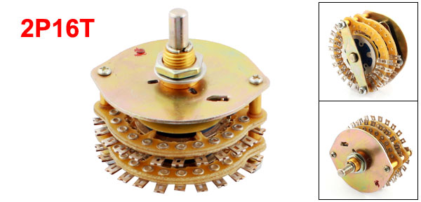 Product Name Rotary Switch Contact Type 2 Pole 16 Position(2P16T), 2 Deck Rotating Shaft Dia 6mm / 0.24" Pin Number 2*17 Thread Dia 10mm/0.4" Dimensions 5.5 x 5.5cm / 2.2" x 2.2"(Max.D*H) Material Metal, FR-4 Net Weight 90g Package Content 1 x Rotary Switch - Reviews