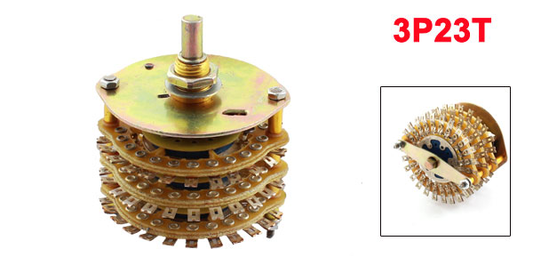 Product Name Rotary Switch Contact Type 3 Pole 23 Position(3P23T), 3 Deck Rotating Shaft Dia 6mm / 0.24" Pin Number 3*24 Thread Dia 10mm/0.4" Dimensions 5.5 x 7.5cm / 2.2" x 3"(Max.D*H) Material Metal, FR-4 Net Weight 85g Package Content 1 x Rotary Switch - Reviews