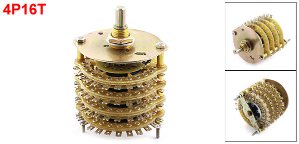 Product Name Rotary Switch Contact Type 4 Pole 16 Position(4P16T), 4 Deck Rotating Shaft Dia 6mm / 0.24" Pin Number 4*17 Thread Dia 10mm/0.4" Dimensions 5.5 x 9cm / 2.2" x 3.5"(Max.D*H) Material Metal, FR-4 Net Weight 95g Package Content 1 x Rotary Switch - Reviews