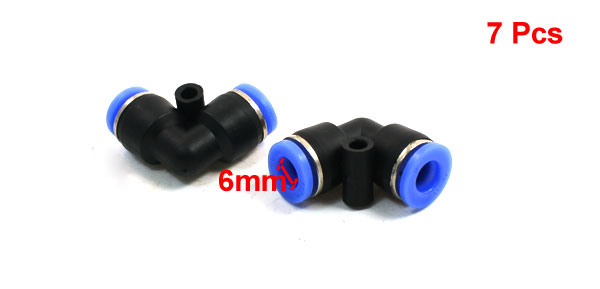 6mm Diameter 2 Way L Shaped Pneumatic Push in Fittings Black Blue 7PCS