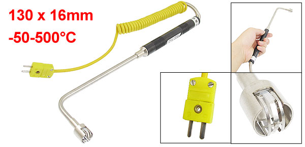 Product Name Thermocouple Type K Type Material Electronic Parts, Plastic Color Yellow, Silver Tone, Black Temperature Range -50-500C Fork Terminal Spacing 5mm/ 0.2" Probe Dia 6mm/ 0.23" Handle Size 130 x 16mm/ 5.12" x 0.62"(L*D) Spring Length 45mm/ 1.8" Wire Length 27cm/ 10.7" (Not Stretch) Net Weight 97g Package Content 1 x Thermocouple - Reviews