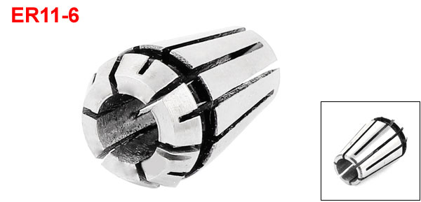 Product Name Spring Collet Model No. ER11-6 Hole Diameter 6mm Overall Size 11.5 x 18mm / 0.45" x 0.7" (Max.D*H) Material Spring Steel Color Silver Tone Net Weight 6g Package Content 1 x Spring Collet - Reviews