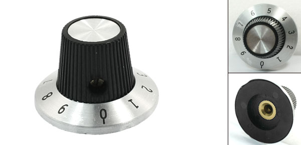 Product Name Potentiometer Rotary Knob Material Plastic, Metal Color Black, Silver Tone Fit for Shaft Hole Dia. 6mm / 0.24" Knob Top Diameter 15mm/0.59" Overall Size 23 x 15mm / 0.9" x 0.6" D*H) Weight 9g Package Included 1 x Potentiometer Rotary Knob - Reviews