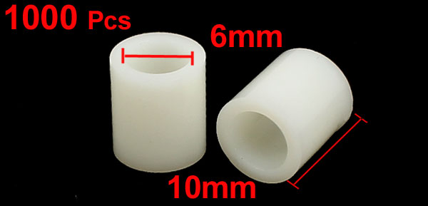 6mm Inner Diameter 10mm Length Ivory Plastic Spacers Washers Standoffs 1000 Pcs