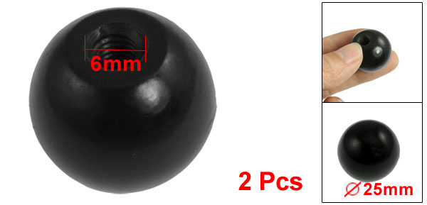 6mm Moulded Thread 25mm Dia Tapped Handling Ball Knobs Black 2 Pcs