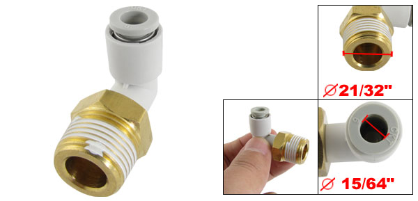 Item Name Pneumatic Fitting Design Elbow Fit Tube OD 6mm / 15/64"(0.236") Thread OD 16.5mm / 21/32"(0.649") Overall Size 29 x 17 x 36mm / 1.1" x 0.7" x 1.4"(L*W*H) Material Brass & Plastic Color As Picture Show Weight 28g Package Content 1 x Pneumatic Fitting - Reviews
