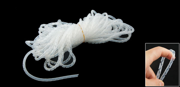 Product Name Spiral Wrap Material Polyethylene Color White Total Length(Approx.) 18.5M / 60.7Ft Outside Diameter 6mm / 0.236'' Thickness 0.4mm / 0.016'' Net Weight 149g Package Content 1 x Spiral Wrap - Reviews