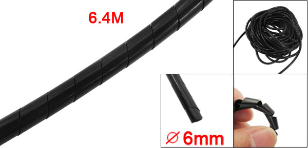 6mm Outside Dia 6.4M PE Polyethylene Spiral Cable Wire Wrap Tube Black