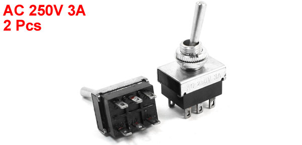 6mm Panel Mount ON/OFF DPDT Latching 6 Pin Toggle Switch AC 250V 3A KN4 2pcs