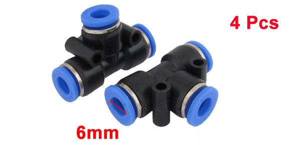 6mm Pneumatic T Shape Push In Connector Quick Fittings 4 Pcs