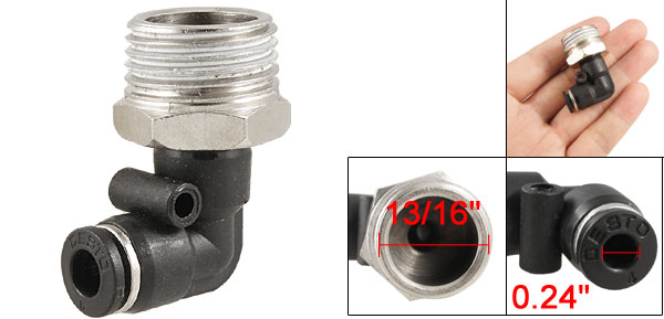 Product Name Pneumatic Quick Fittings Type Elbow Type One Touch Connector 6mm/ 0.24" Thread Connector 20.5mm/ 13/16" Material Plastic & Metal Size (Approx) 3.8 x 3.2 x 2.5cm/ 1.5" x 1.26" x 0.98" (L*W*T) Color Black, Silver Tone Weight 29g Package Content 1 x Pneumatic Quick Fittings - Reviews