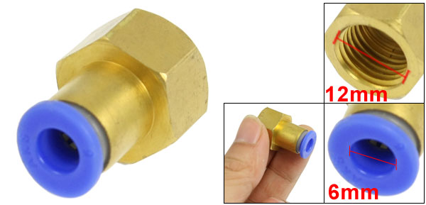 Item Name Quick Fittings Total Size 24 x 17mm/ 0.94" x 0.67" (L*D) Thread Diameter 12mm/ 0.47" Inner Diameter (Blue End) 6mm/ 0.24" Material Solid Brass & Plastic Color Gold Tone, Blue Weight 17g Package Content 1 x Quick Fittings - Reviews