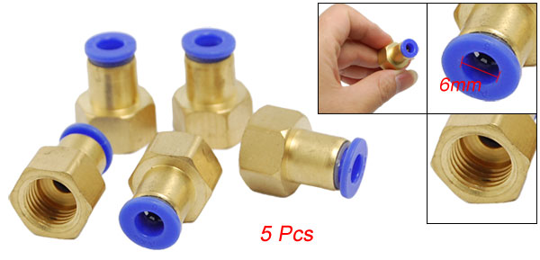 Item Name Quick Fittings Total Size 25 x 14mm/ 1" x 0.6"(L*D) Thread Diameter 13mm/ 0.512" Inner Diameter (Blue End) 6mm/ 0.236" Material Chrome Plated Brass & Plastic Color Gold Tone, Blue Weight 78g Package Content 5 x Quick Fittings - Reviews