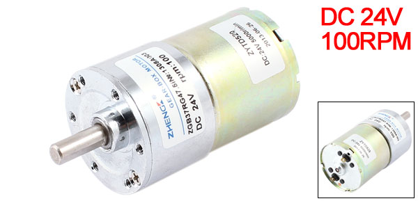 Product Name DC Geared Motor Model ZGB37RG47.5i Rated Voltage DC 24V Output Speed 100RPM Mounting Screw Hole Diameter 2.5mm/0.1" Gearbox Size 35 x 55mm/1.4" x 2.2"(D*H) Shaft Size 6 x 15mm/ 0.24" x 0.6"(D*L) Body Lenght 75mm/ 2.8" Main Color Bronze Tone, Silver Tone Material Metal, Magnetic Net Weight 186g Package 1 x DC Geared Speed Reduce Motor - Reviews