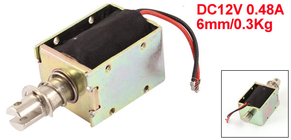 Product Name Solenoid Electromagnet Rated Voltage & Current DC12V 0.48A Power 5.76W Action Form Push Pull Type Stroke & Force 6mm/0.3Kg