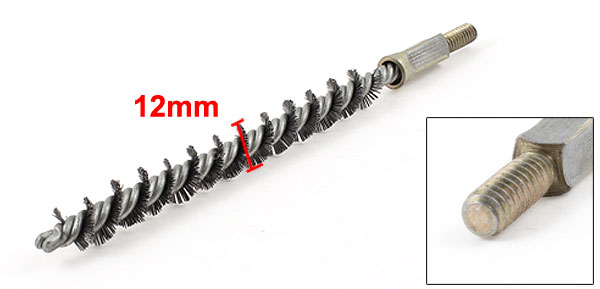 Product Name Steel Wire Tube Brush Material Steel, Metel Main Color Silver Tone Threaded Diameter 6mm/0.24" Bristle Brush Length 110mm/4.3" Total Size 160 x 12mm/ 6.3" x 0.47"(L*D) Net Weight 43g Package Content
