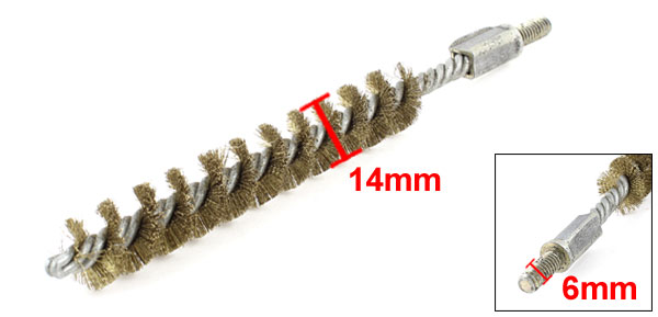 6mm Thread 14mm Diameter Metal Wire Tube Brush Cleaning Tool Gold Tone