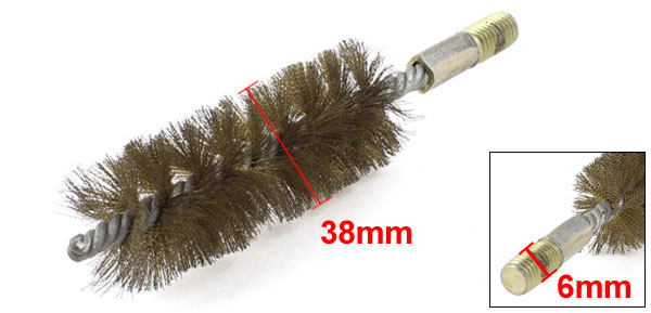 6mm Thread 38mm Diameter Metal Wire Tube Brush Cleaning Tool Gold Tone