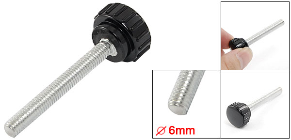 Product Name Knurled Knob Type Screw On Head Diameter 22mm / 0.87" Thread Length 50mm / 1.96" Thread Diameter 6mm / 0.24" Total Height 62mm / 2.4" Material Metal & Plastic Color Silver Tone & Black Weight 17g Package Content 1 x Knurled Knob - Reviews