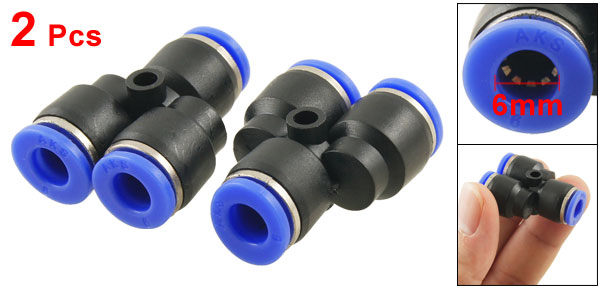 6mm to 6mm Y Shaped Puch In Connector Pneumatic Fittings 2 Pcs