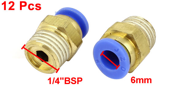6mm Tube 1/4"BSP Male Thread Quick Connector Pneumatic Air Fittings 12 Pcs
