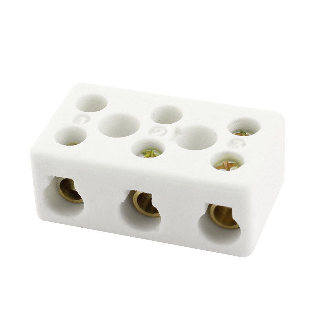 6mm Wiring Hole Dia Connector Porcelain Ceramic Terminal Block 3W8H AC 250V 600C
