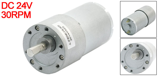 Product Name DC Motor Rated Voltage DC 24V Motor No-load Speed 30RPM Pin Number 2 Shaft Diameter mm/0.24" Shaft Length 15mm/0.6" Motor Size 40 x 34mm/1.6" x 1.4"(L*D) Gear Box Size 27 x 37mm/1.1" x 1.7"(L*D) Total Length 89mm/3.5" Material Metal Weight 224g Package 1 x DC Motor - Reviews