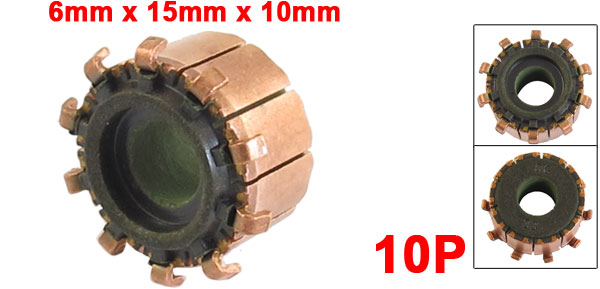 Product Name Motor Commutator Copper Bar Number 10P Total Length 6 x 15 x 10mm/0.24" x 0.6" x 0.4"(ID*OD*T) Material Copper, Feerite Color Copper Tone, Black Net Weight 5g Package Content 1 x Motor Commutator - Reviews