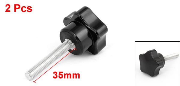 6mm x 35mm Male Threaded Star Shape Clamping Knob Grip Black Silver Tone 2 Pcs
