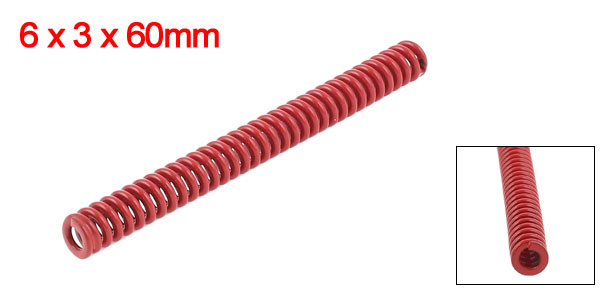 Product Name Die Spring Size 6 x 3 x 60mm/ 0.24" x 0.12" x 2.4"(OD* Inner Dia * L) Materials Chromium Alloy Steel Color Red Net Weight 5g Package Content 1 x Die Spring - Reviews