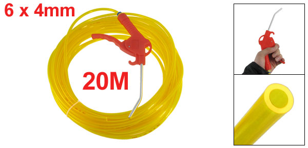 6mm x 4mm Clear Yellow PU Hose Pipe Trigger Air Duster Blow Gun 20M 65Ft