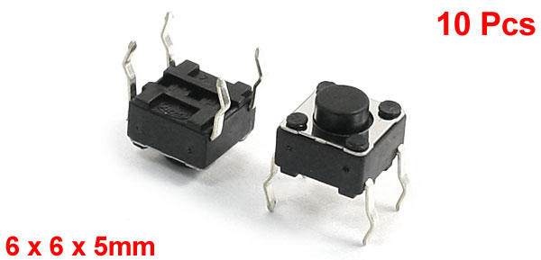 6mm x 6mm x 5mm Momentary 4 Pins Micro PCB Tact Tactile Switch 10 Pcs