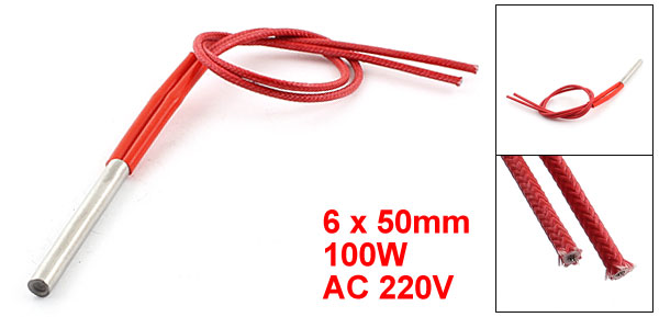 Main Color Red, Silver Tone Brand DMiotech Net Weight 15g Total Length 315mm/12" Country of Manufacture CHINA Package Content 1 x Cartridge Heater Power 100W Tube Size 6 x 50mm/0.24" x 2"(D*L) Voltage AC 220V Material Stainless Steel, PVC, Nylon - Reviews