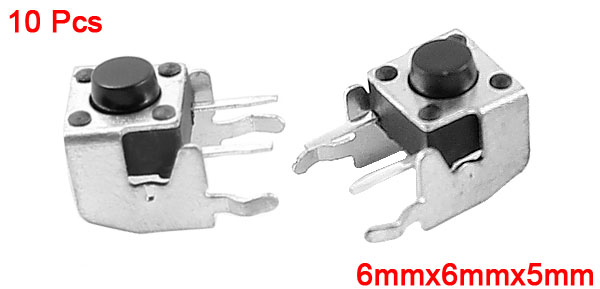 Product Name Tact Switch Action Type Momentary Total Size(Pin Not Include) 6 x 6 x 5mm/0.24" x 0.24" x 0.2"(L*W*T) Button Diameter 3mm/0.1" Material Plastic, Metal Color Black Net Weight 5g Package Content 10 x Tact Switches - Reviews